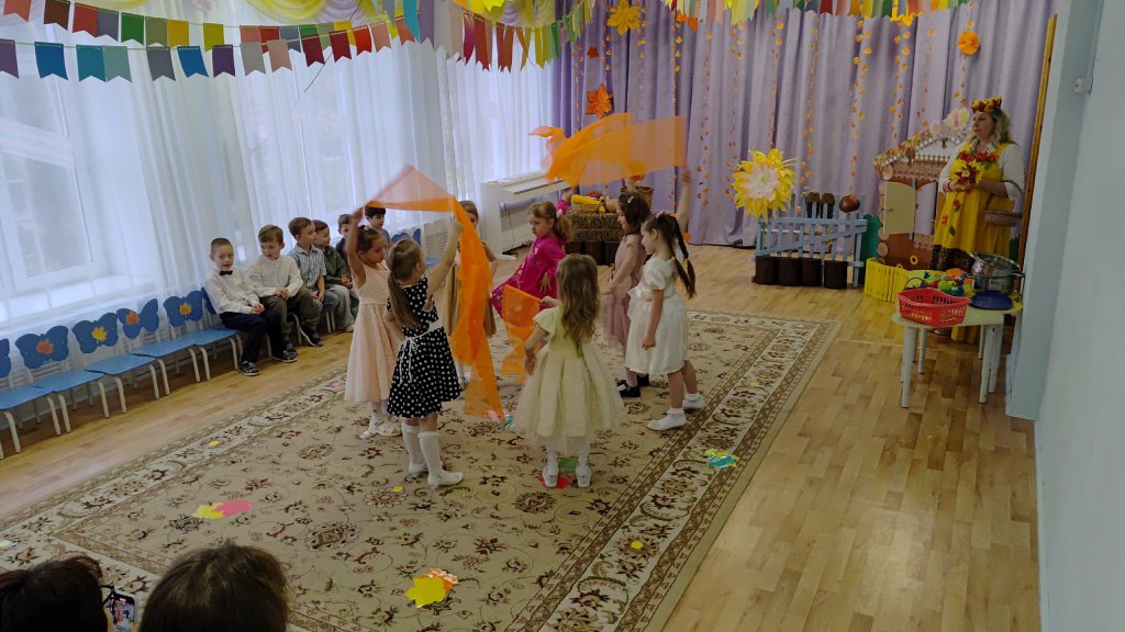 Танцы с платочком — так элегантно и красиво! Платочек в руках превращался то в легкое облачко, то в крылья бабочки. Девочки были просто очаровательны!