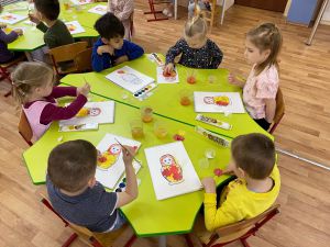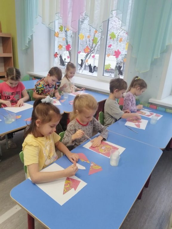 Также дети попробовали себя в роли художников: украшали шаблоны матрёшек своими узорами, вдохновляясь традиционными мотивами.