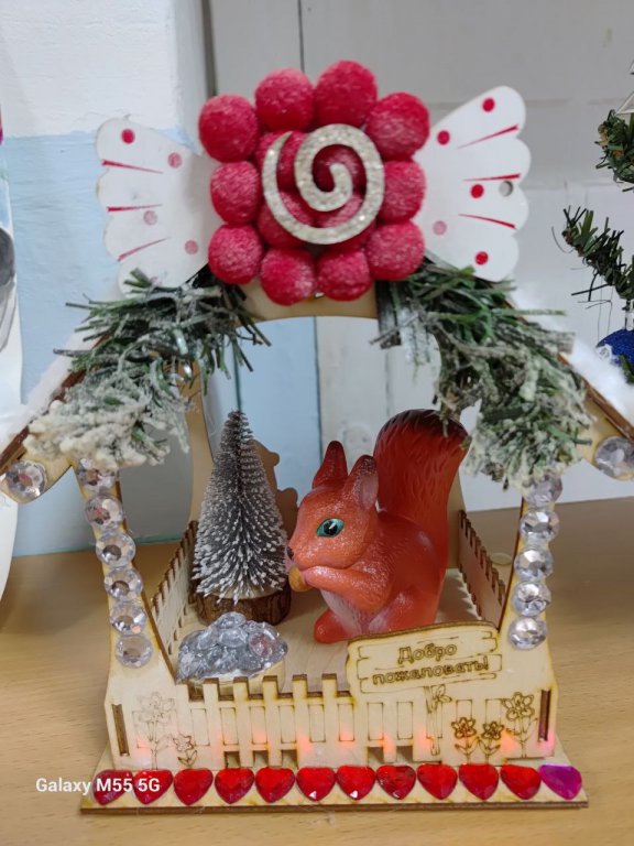 Наши юные художники вместе с родителями создали волшебные поделки:•загадочная русалка из «Сказки о рыбаке и рыбке»; •мудрый кот учёный, шагающий у златой цепи; •уютный домик с волшебной белкой, что «песенки поёт, да орешки всё грызёт»; •и даже ретивый конь — символ грядущего года!